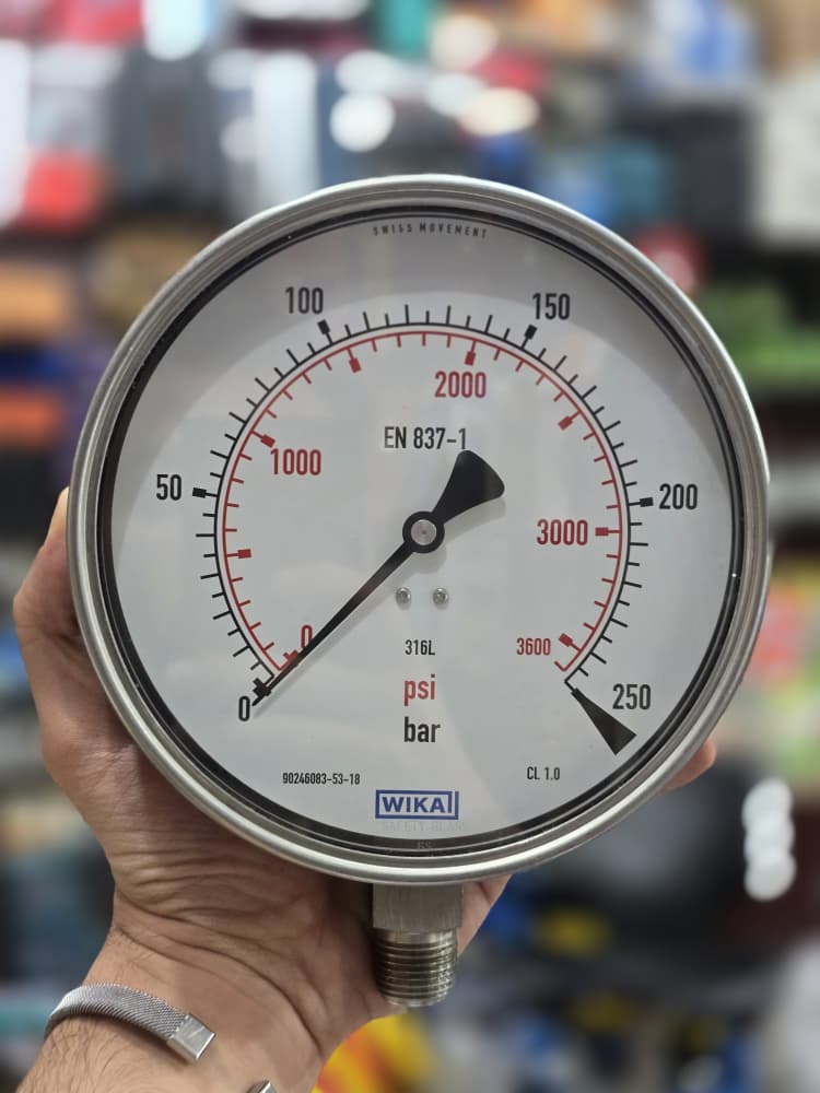 مانومتر صفحه 15 سانت تمام استیل (316) 0 تا 250 بار برند ویکا اصل