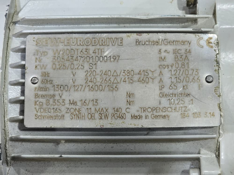 گیربکس SEW سری W20 به همراه الکتروموتور DT63L4 (0.25kW)